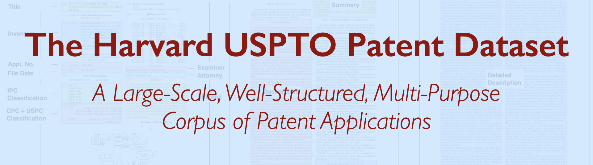 The Harvard USPTO Dataset (HUPD) is a large-scale, well-structured, and multi-purpose corpus of English-language utility patent applications filed to the United States Patent and Trademark Office (USPTO) between January 2004 and December 2014.